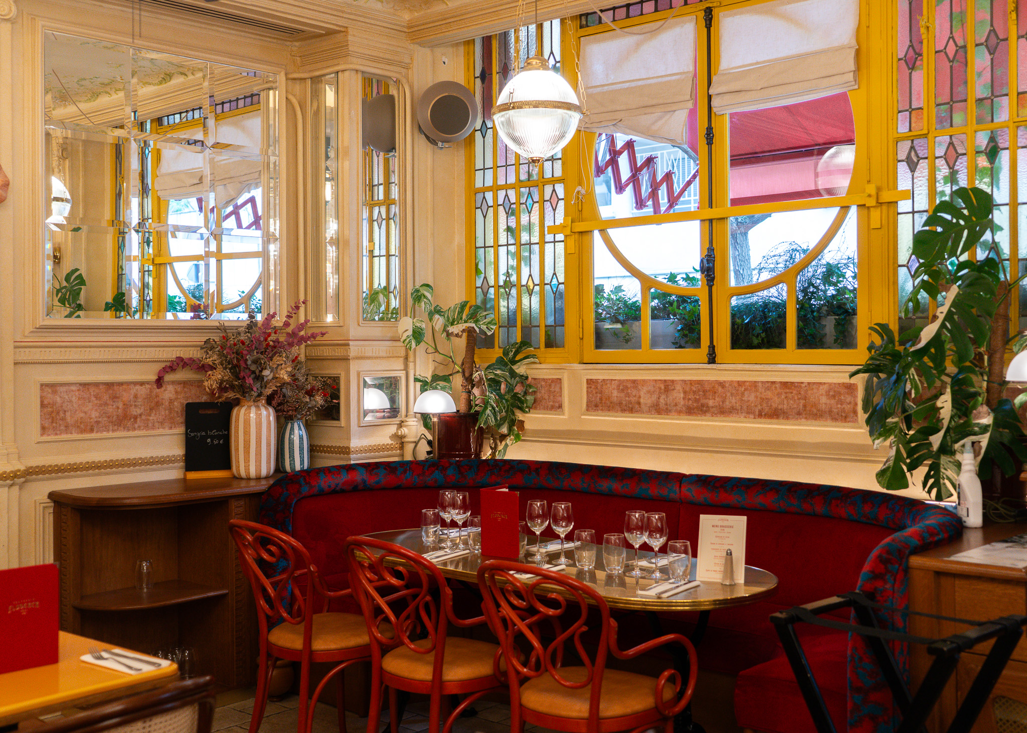 Localizada em uma rua tranquila, a brasserie dá a sensação de estar em uma charmosa cidade do interior da França, em vez do coração de Paris.