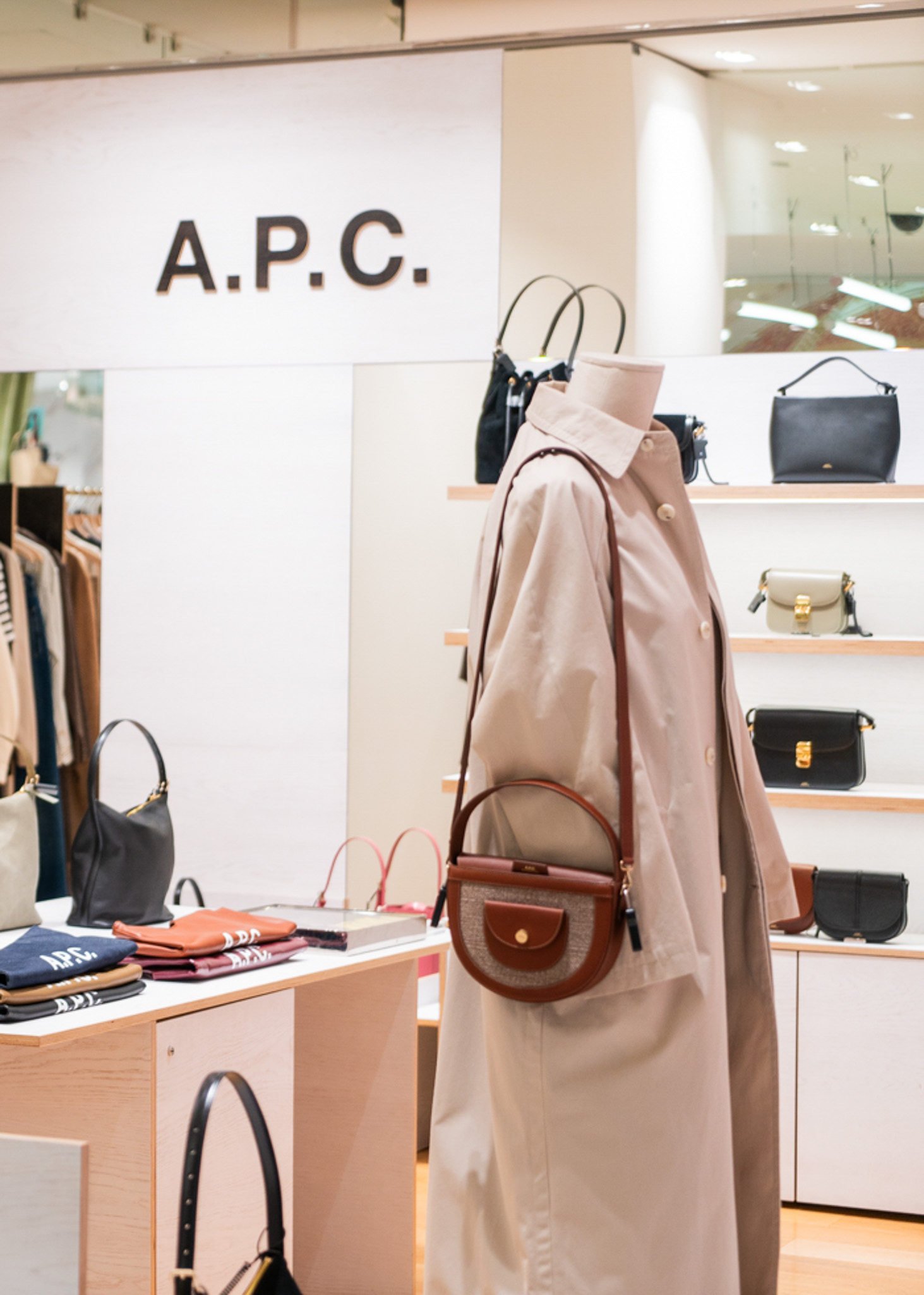 Criada em 1987 por Jean Touitou, a A.P.C. (Atelier de Production et de Création) é conhecida por seus básicos atemporais, reinterpretando alfaiataria clássica e workwear com ternos refinados e peças de jeans icônicas.