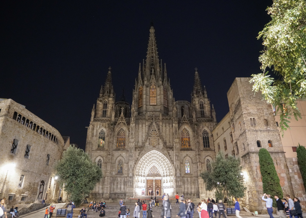 โบสถ์สไตล์กอธิค (Gothic Style) ที่มียอดสูงแหลมเด่นชี้ขึ้นฟ้า จะเป็นที่ไหนไม่ได้นอกจากโบส์ประจำเมืองบาร์เซโลน่า ที่ด้านหน้าโบสถ์นั้นคือพลาซ่าที่เป็นที่ตั้งของตลาดในช่วงเทศกาล และเป็นที่นั่งพักของผู้คนที่สัญจรไปมาอีกด้วย เมื่อก้าวเข้าไปในตัวโบสถ์ก็จะพบกับห้องโถงใหญ่ เพดานสูง กระจกสี ภาพวาดศิลปะ และรูปปั้นมากมาย กระจายตัวอยู่ด้านในโบสถ์ และไม่ว่าจะเป็นช่วงกลางวันหรือกลางคืน ความสวยงามของโบสถ์นี้ก็ยังคงอยู่ไม่หายไปไหน