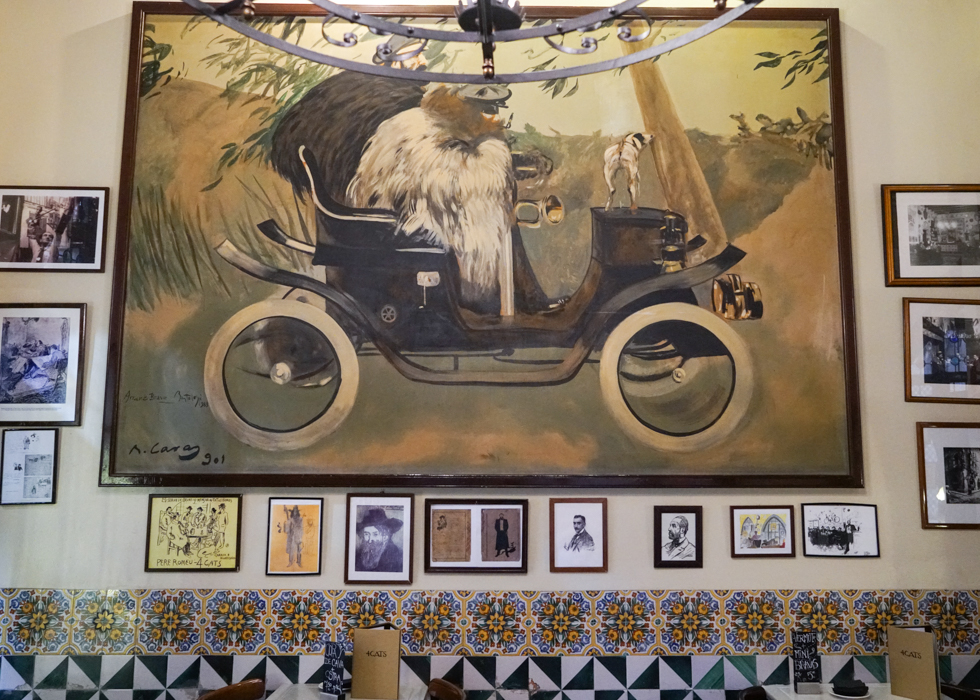 ร้านอาหาร Els 4Gats มีชื่อเรียกอีกชื่อหนึ่งว่า "คาเฟ่ปิกัสโซ่" เปิดให้บริการครั้งแรกเมื่อปี 1897 มีชื่อเสียงโด่งดังมาจากการตกแต่งร้านที่เน้นนำภาพวาดศิลปะมาประดับตกแต่ง ทางร้านไม่ได้ต้องการแค่เพียงเสิร์ฟอาหารคุณภาพในราคาที่ถูกเท่านั้น แต่ยังต้องการสื่อให้คนทั่วไปเห็นความสำคัญของศิลปะอีกด้วย โดยในอดีต ปิกัสโซ่ (Picasso) เคยเดินทางมารับประทานอาหารที่นี่บ่อยๆ และเขาได้ใช้ที่นี่เป็นสถานที่จัดแสดงผลงานศิลปะครั้งแรกของเขาอีกด้วย มากไปกว่านั้น ปิกัสโซ่ยังได้มีการร่วมมือกับทางร้าน ออกแบบหน้าปกเมนู ใครอยากมาเห็นสถานที่ที่คนสำคัญในอดีตเคยเดินทางมาเยือน ห้ามพลาดเด็ดขาด ตั้งอยู่ไม่ไกลจากโบสถ์บาร์เซโลน่า และโรงละคร Palau de la Musica Catalana จะแค่แวะมาจิบกาแฟหรือรับประทานอาหารก็ได้