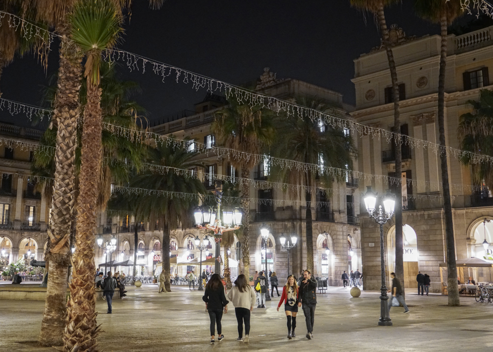 อีกพลาซ่าหนึ่งที่มีชื่อเสียงในบาร์เซโลน่าคือ Placa Reial ตั้งอยู่ใกล้กันกับถนนคนเดินรัมบลาส ที่พลาซ่านี้ถูกล้อมรอบไปด้วยตึกอาคารสวยงามมากมาย รวมไปถึงน้ำพุและต้นปาล์มอีกมากมาย เสาไฟให้แสงสว่างในยามค่ำคืนนั้นเป็นผลงานศิลปะชิ้นแรกๆที่ถูกออกแบบโดย Gaudi