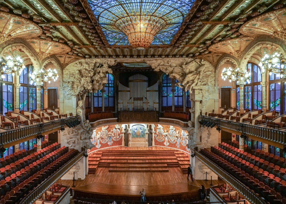 หอประชุมหรือโรงละครที่สวยงามที่สุดในโลก Palau de la Musica Catalana เรียกได้ว่าเป็นความภาคภูมิใจของคนบาร์เซโลน่าเลยก็ว่าได้ เพราะโรงละครแห่งนี้นั้นเปี่ยมล้นไปด้วยเสน่ห์ทั้งจากตัวอาคารและการประดับตกแต่งรอบๆในสไต์นวศิลป์ (Art Nouveau Style) ประดับประดาด้วยรูปดอกไม้เต็มไปหมด เพื่อเป็นการแต่งแต้มความสดใสให้แก่เมืองเมื่อเมืองตกอยู่ในความมืดมิด ที่นี่ยึดถือคำที่ว่า "music is universal" ทำให้โรงละครที่นี่นั้นมีการแสดงที่หลากหลายจากดนตรีหลากหลายแขนง โรงละครสามารถรองรับผู้ชมได้ถึง 2,146 คน เรียกได้ว่าเพียงพอสำหรับความต้องการอย่างแน่นอน ที่นี่เป็นอีกหนึ่งสถานที่ที่ถูกขึ้นทะเบียนเป็นมรดกโลกโดยองค์การ UNESCO ทำให้มีนักท่องเที่ยวหลั่งไหลเข้ามา มีไกด์นำทัวร์รอบๆในหลากภาษา ทุกๆ 30 นาที