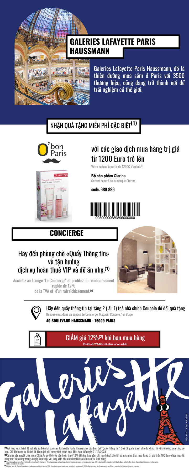 • Ưu đãi chỉ áp dụng tại Galeries Lafayette Haussmann (gần Opera Garnier).