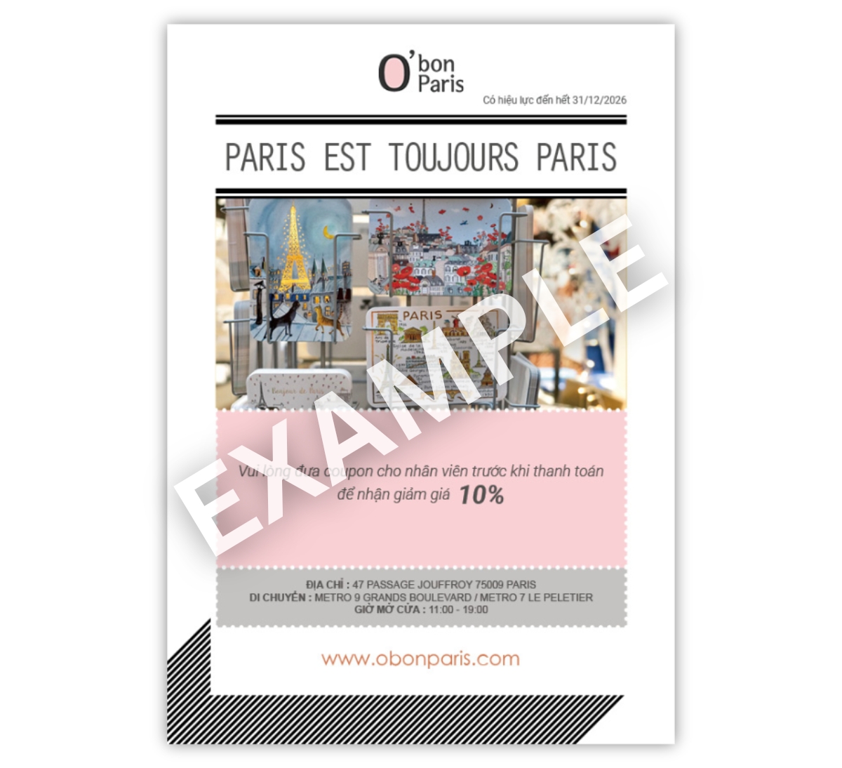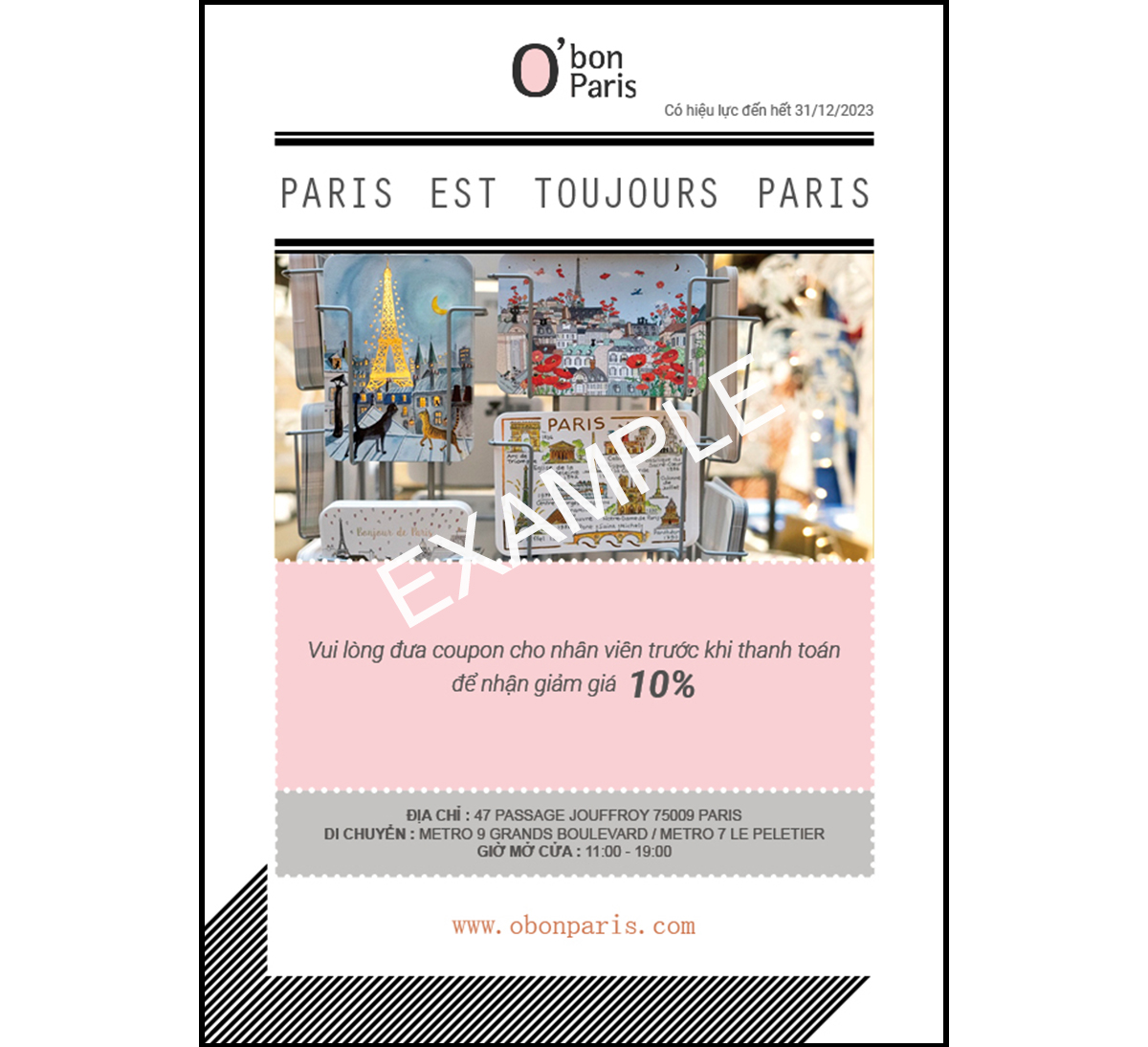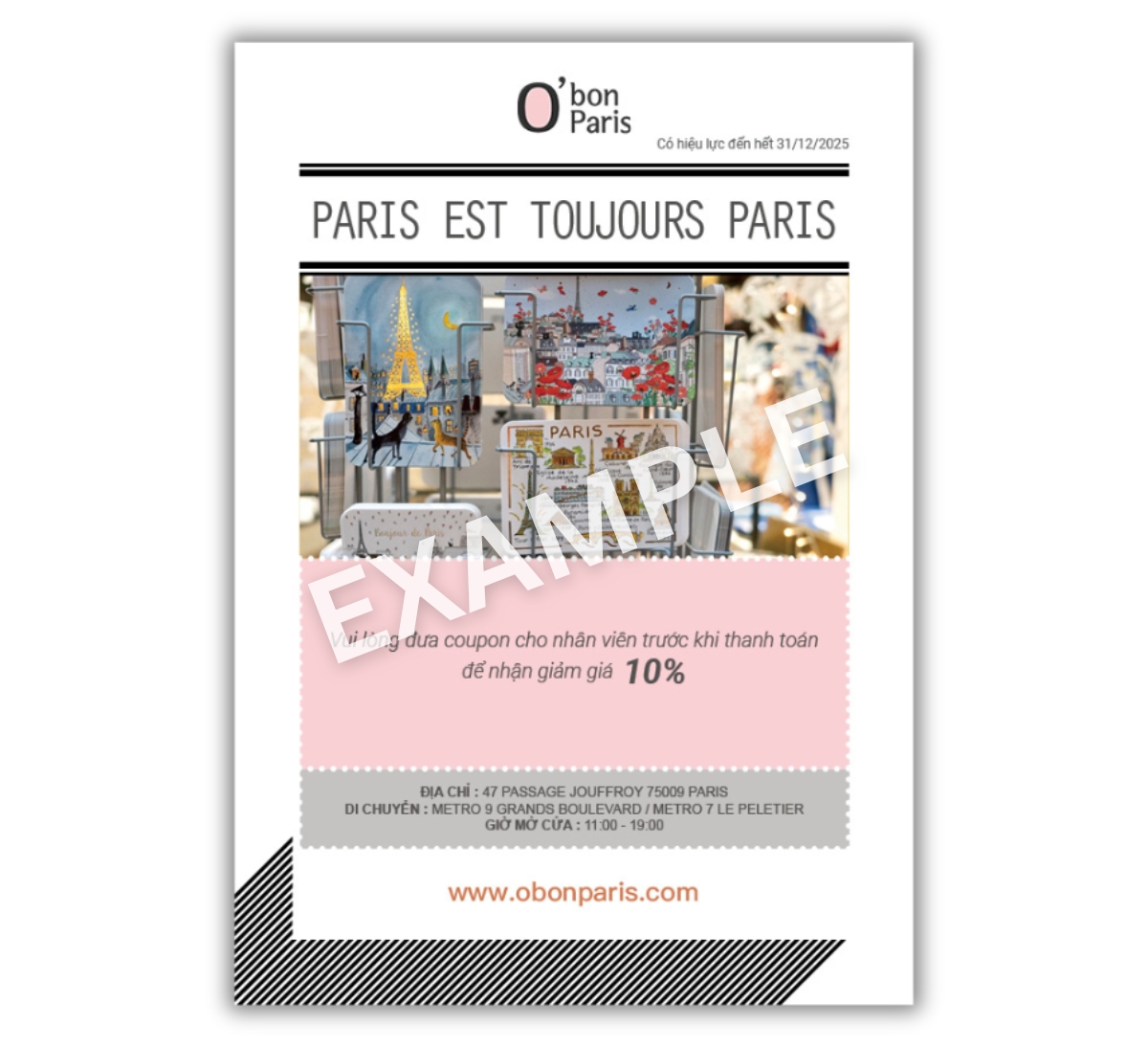 Với coupon của O'bon Paris, bạn sẽ được giảm 10% khi mua hàng tại đây.