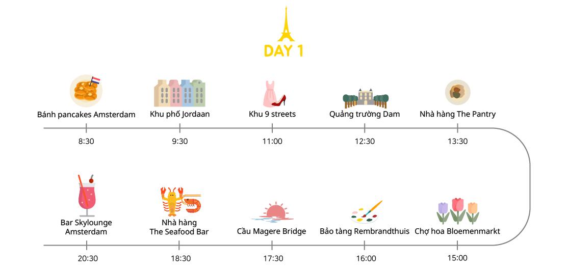 Từ ngôi nhà Anne Frank đến bảo tàng hoa tulip dễ thương, có rất nhiều quán cà phê và nhà hàng trên mỗi con phố tại quận Jordaan. Nằm gần trung tâm, quận này ngày càng trở nên phổ biến hơn trong giới trẻ. Vào một ngày nắng, bạn có thể thoải mái ngồi xuống quán cà phê sân thượng gần kênh và thưởng thức một tách cà phê. Nếu bạn đang có kế hoạch đến thăm nhà Anne Frank, hàng đợi rất dài và bạn nên đặt vé trực tuyến trước.