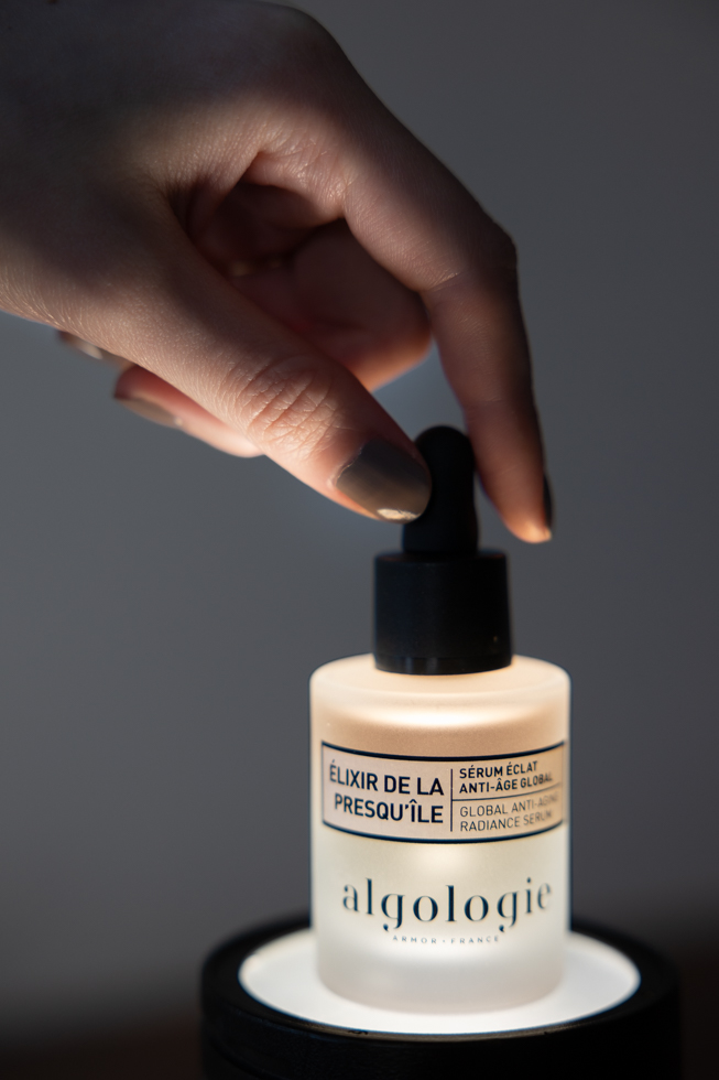 Các sản phẩm Algologie, được sản xuất tại vùng Bretagne phía tây bắc nước Pháp, sử dụng các nguyên liệu địa phương với các hoạt chất tự nhiên. 97% thành phần của sản phẩm có nguồn gốc tự nhiên. Serum tăng độ rạng rỡ, chống lão hóa này kết hợp sức mạnh tái tạo của rong biển Laminaria Digitata với Tảo Cầu Vồng, một hoạt chất chống nám mạnh mẽ để khắc phục mọi dấu hiệu lão hóa. Elixir làm mờ nếp nhăn và giúp da lấy lại độ săn chắc. Kết cấu hai pha kết hợp độ nhẹ của serum với cảm giác bao bọc lên làn da của lớp dầu.