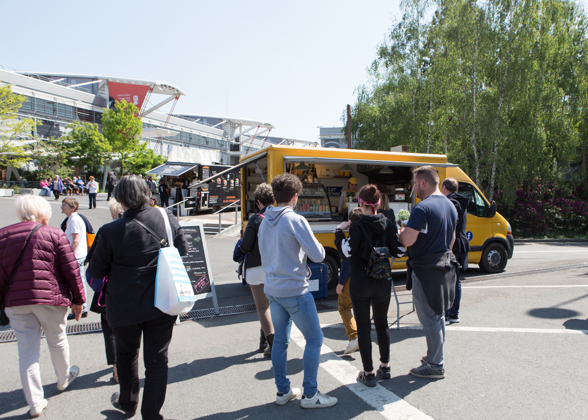 Ngoài phòng triển lãm trong nhà, có một loạt các quầy hàng thực phẩm di động, quán cà phê và đồ ăn nhanh xung quanh gian hàng để du khách thưởng thức.