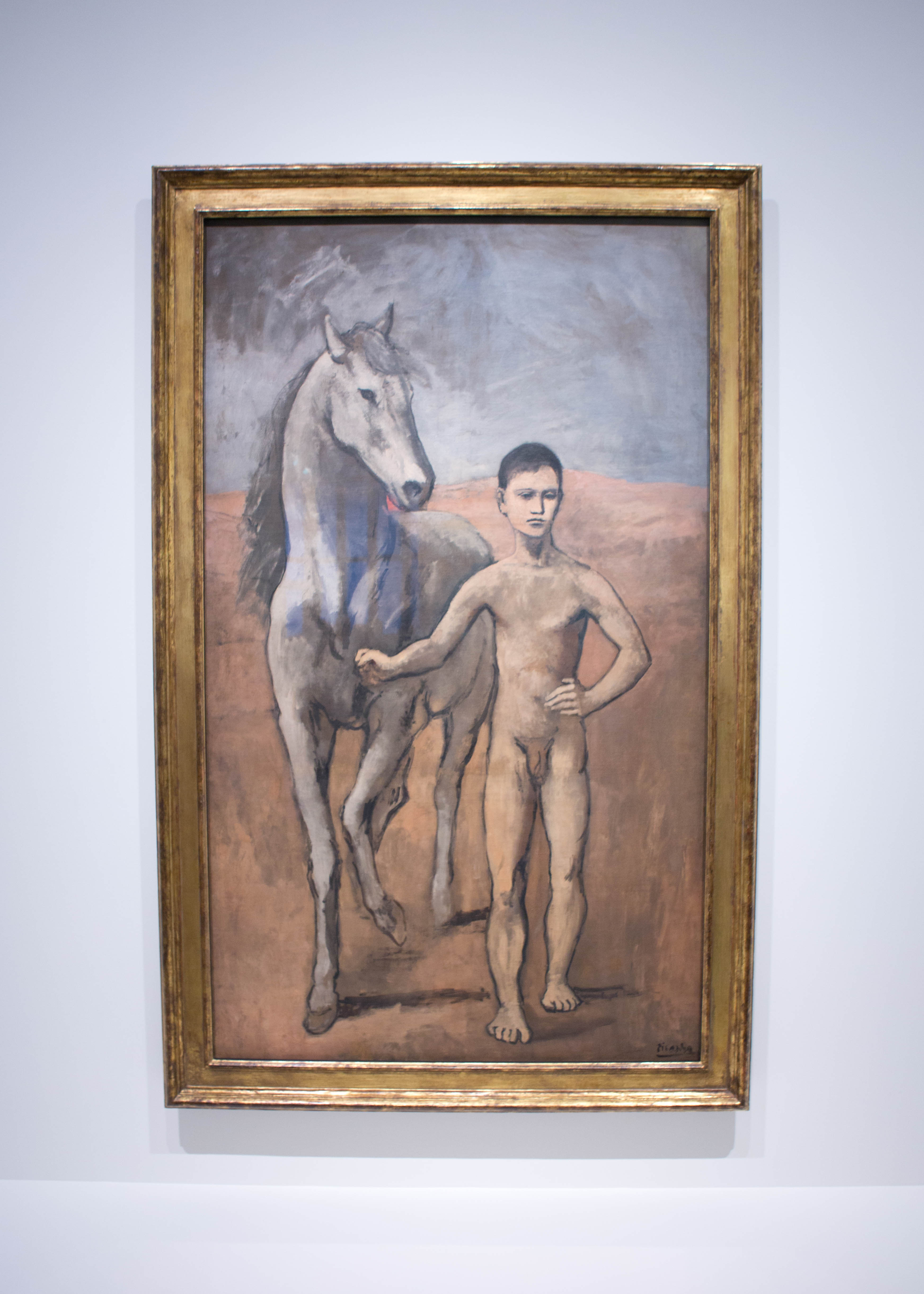 Hình ảnh của cậu bé biểu hiện nghiêm túc, với một bàn tay đặt trên hông của mình với một tư thế độc đáo và theo sau là chú ngựa trung thành, màu nền của bức tranh màu xám và nâu và trắng. Điều này cũng cho thấy rằng Picasso đã phát hiện ra một anh hùng đương đại để bổ sung cho nguồn cổ xưa của mình: Paul Cezanne. Picasso bị ảnh hưởng sâu sắc bởi Paul Cézanne, một phong cách hội họa không đồng nhất rất đặc trưng mà chúng ta có thể nhìn thấy qua các tác phẩm của Paul Cézanne.