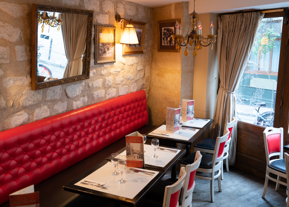 Nội thất của nhà hàng mang kiến trúc kiểu Pháp cổ, không quá lớn nhưng vẫn thoải mái và ấm cúng. Chỗ ngồi bên trong phù hợp khi thời tiết lạnh hoặc mưa, bạn có thể vừa ăn vừa ngắm cảnh Montmartre tuyệt đẹp mà không bị lạnh.
