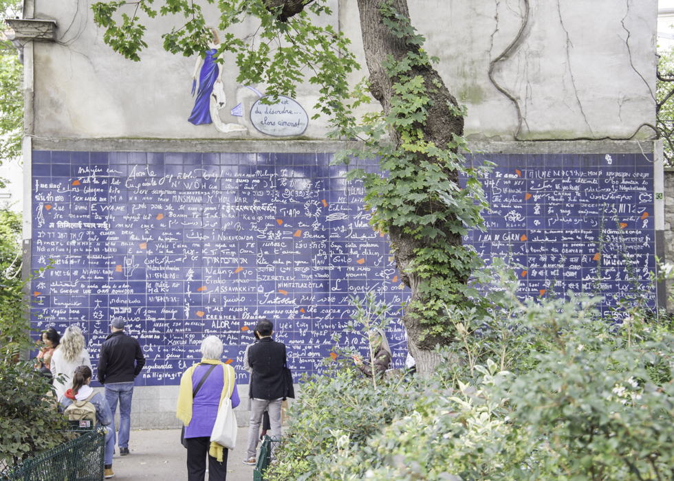 Trước khi đi thẳng đến vương cung thánh đường Sacré Coeur, hãy dành chút thời gian của bạn để xem một tác phẩm nghệ thuật khác, Bức tường Anh yêu Em. Bức tường lớn màu xanh được viết anh yêu em bằng 250 ngôn ngữ. Là tác phẩm của Frédéric Baron và Claire Kito. Bạn cũng sẽ nhận thấy những mảnh nhỏ màu đỏ tượng trưng cho những mảnh vỡ của trái tim được cho là sẽ được chữa lành bằng những lời yêu thương.