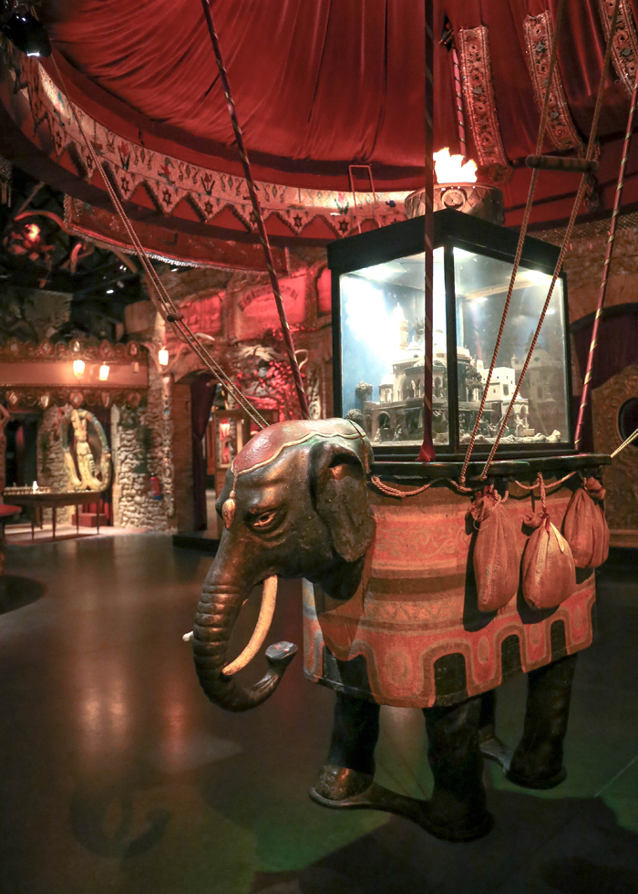 Chúng tôi bước vào tòa nhà tối sau hướng dẫn của hướng dẫn viên. Trước mắt của chúng tôi là con voi biết bay. Có vẻ như chúng tôi đang sống trong cuộc phiêu lưu tuyệt vời trong thế giới tưởng tượng như bộ phim "Cuộc phiêu lưu vĩ đại của Baron" và "80 ngày trên toàn thế giới". Người ta nói rằng nó đã được trưng bày tại gian hàng Ấn Độ trong Triển lãm Thế giới năm 1931 ở Paris. Có lẽ người Châu Âu mơ ước một chuyến đi đến Ấn Độ, một thế giới của sự tưởng tượng và bí ẩn vào thời đó.
