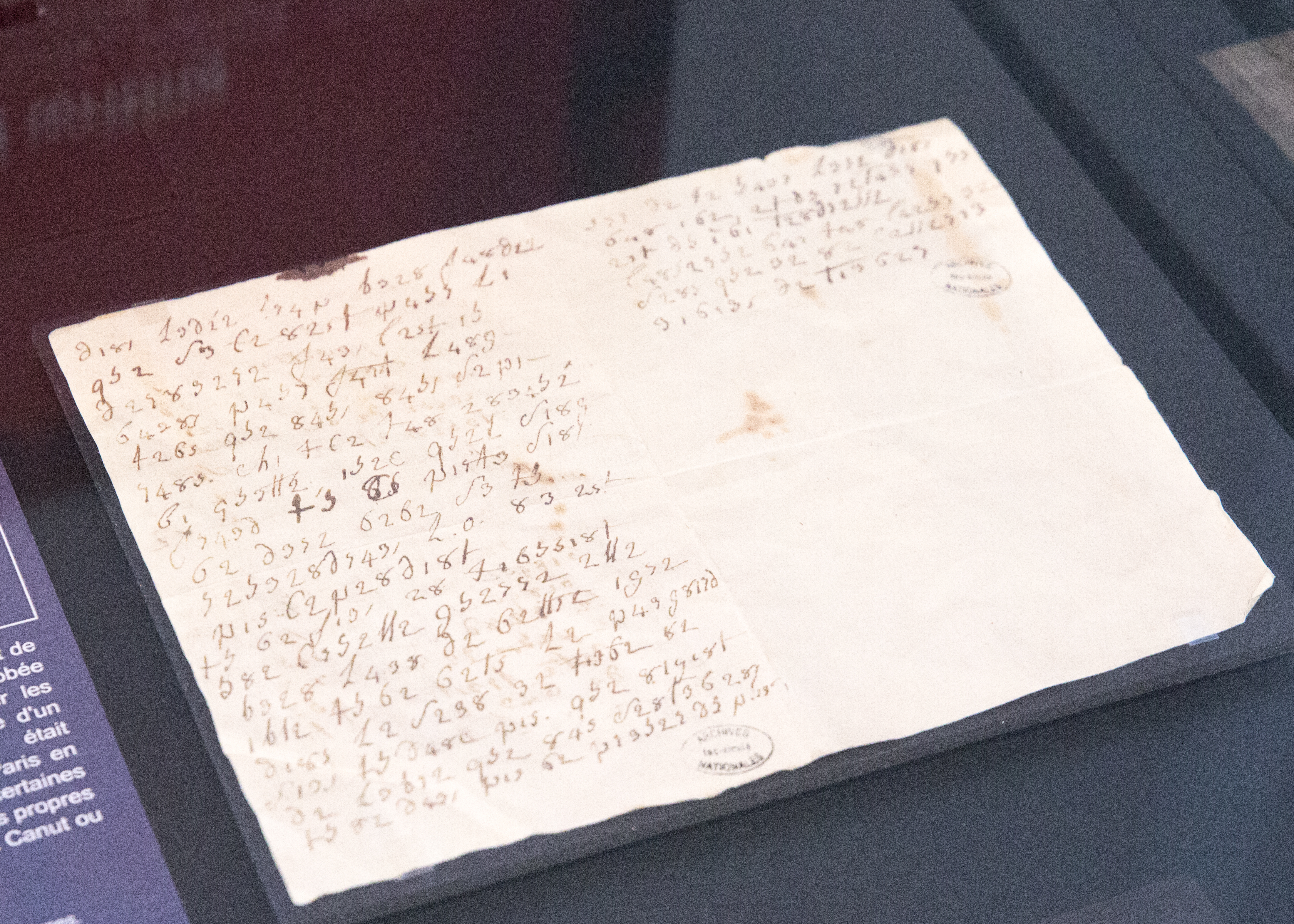Tầng trên đang được tu sửa, chứa các tài liệu thực tế được liệt kê theo năm và các tài liệu lịch sử quan trọng như Sắc lệnh Nantes và lá thư cuối cùng của Marie Antoinette.