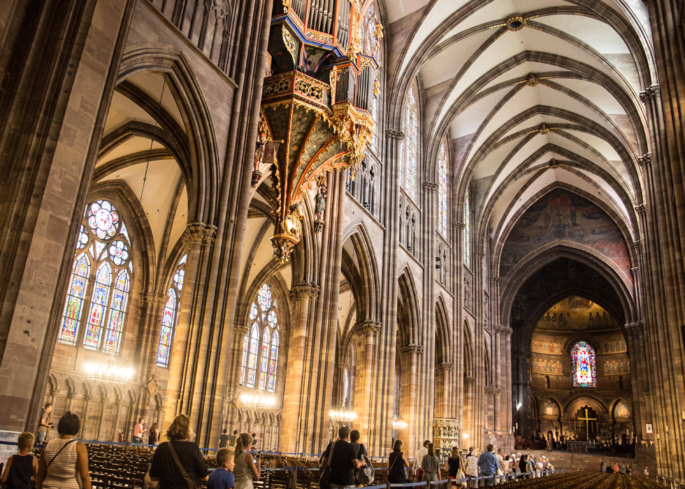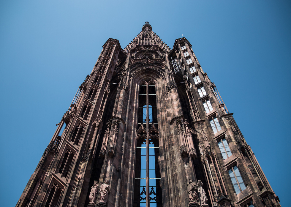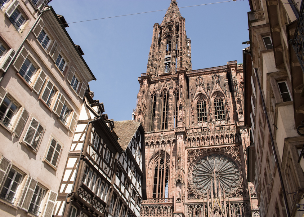 Nhà thờ Strasbourg, hoàn thành vào năm 1439, mê hoặc du khách ngay từ cái nhìn đầu tiên bởi chiều cao ấn tượng. Kiệt tác kiến trúc này thể hiện rõ nét lịch sử phong phú và di sản nghệ thuật của Strasbourg. Được coi là một trong những ví dụ xuất sắc nhất của kiến trúc Gothic, nhà thờ kết hợp hài hòa giữa các ảnh hưởng văn hóa Đức và Pháp. Trong khi các cấu trúc phía đông mang đậm nét Romanesque, mặt tiền phía tây nổi tiếng được trang trí với hàng ngàn bức tượng, đứng vững như một kiệt tác của thời đại Gothic.