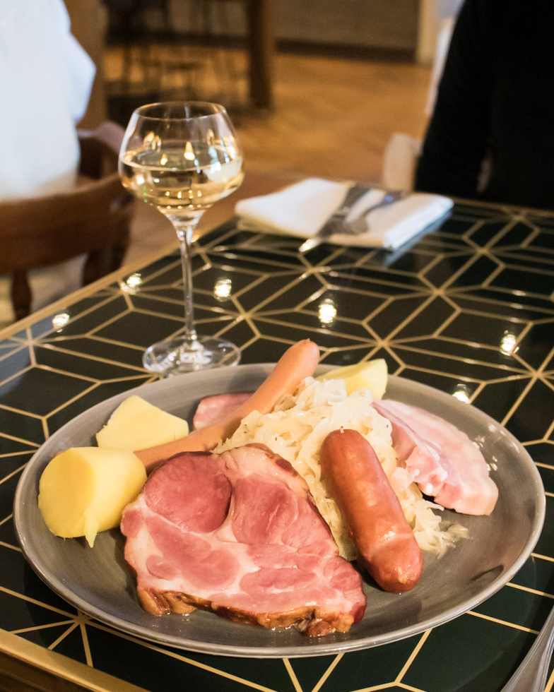Choucroute Garnie có bắp cải chua phủ lên các loại thịt và xúc xích đa dạng. Tarte Flambée, còn được gọi là Flammekueche, mang đến hương vị ngon tuyệt của Alsace với lớp vỏ mỏng phủ crème fraîche, hành tây và thịt xông khói. Bổ sung cho những món này là Crémant d'Alsace, một loại rượu sủi bọt sảng khoái giúp tăng cường trải nghiệm ẩm thực, biến nó trở thành một món ăn không thể thiếu trong ẩm thực Alsace, có thể thưởng thức một mình hoặc kết hợp với bữa ăn.