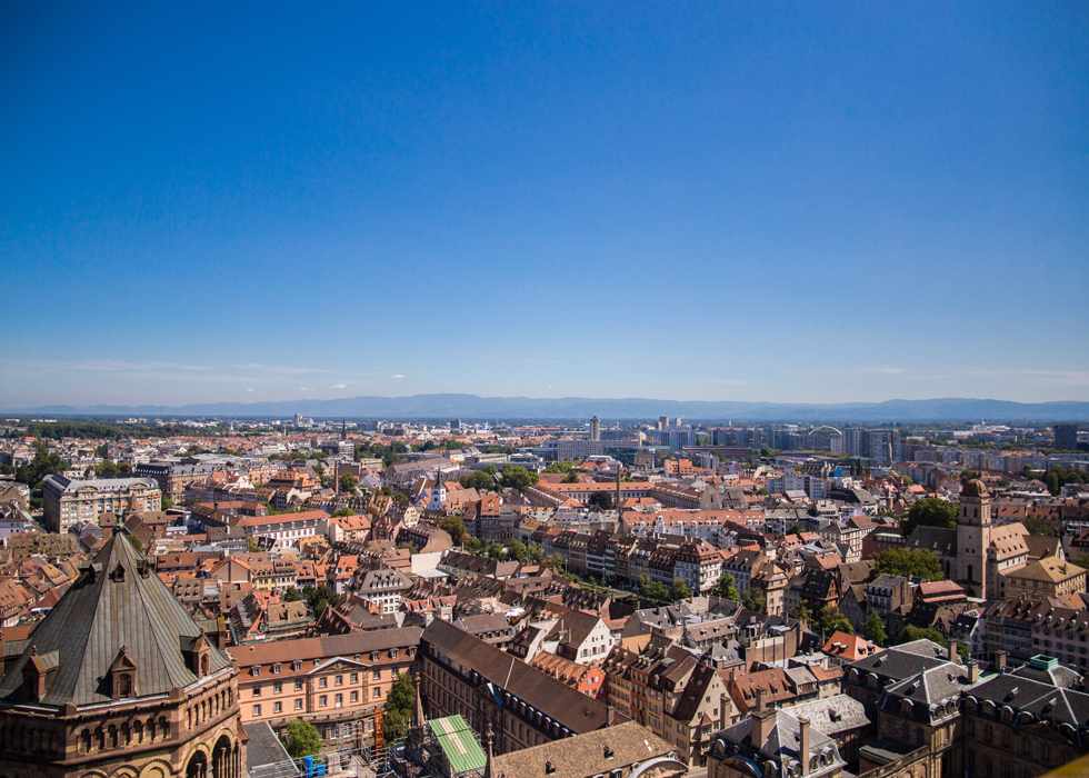 Cầu thang xoắn với 332 bậc sẽ dẫn bạn lên đỉnh của nhà thờ. Tại đỉnh của nền tảng, khung cảnh toàn cảnh thật phi thường. Những mái nhà của Strasbourg thật tuyệt vời và vào những ngày thời tiết tốt, bạn có thể nhìn thấy Rừng Đen ở Đức.