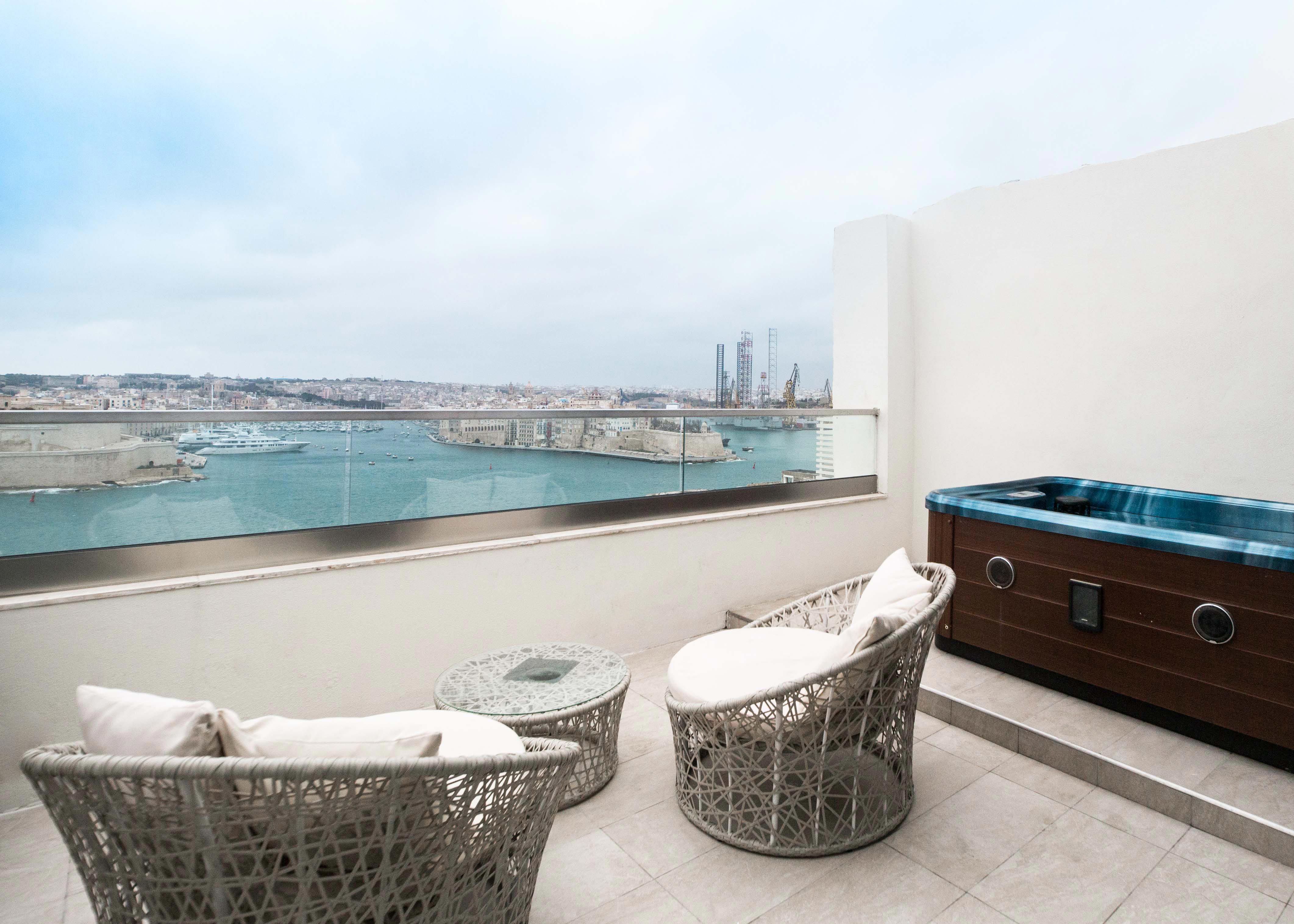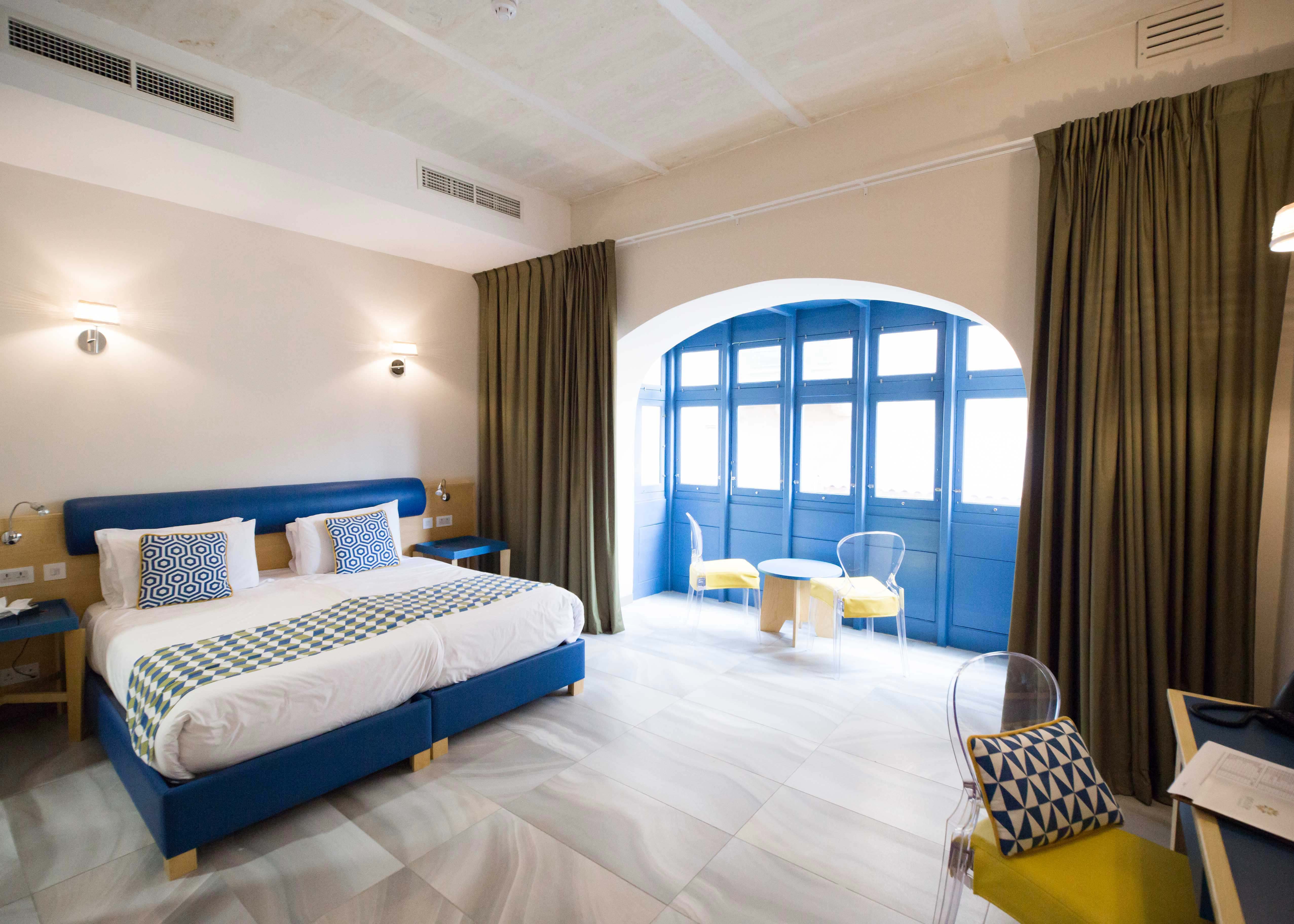 Ngay từ cái nhìn đầu tiên, bạn có thể thấy rằng khách sạn rất nổi bật với màu xanh và màu vàng tươi đặc trưng của kì nghỉ hè ở bãi biển. Phòng Deluxe tại The British Suites rất rộng rãi và thoải mái rộng 38 mét vuông, với giường king size hoặc giường đôi đủ chỗ cho tối đa 3 người. Bên cạnh giường là ban công truyền thống của người Malta được sơn màu xanh lam với một bàn cà phê nhỏ để bạn ngồi bên ngoài và ngắm bình minh hoặc hoàng hôn. Ban công cho phép ánh sáng mặt trời chiếu vào bên trong để làm cho căn phòng trở nên dễ chịu và sáng hơn.