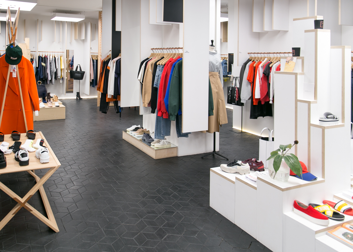 TOM GREYHOUND có hai tầng. Tầng một là quần áo tương đối trung tính, phụ kiện và quần áo mang nhãn hiệu nam giới. Trên tầng hai, thương hiệu quần áo phụ nữ và các phụ kiện.