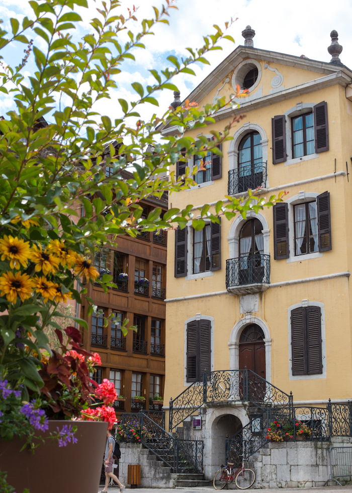 在陽光下,建築物不同的色彩讓整座城市看起來更溫暖,使冬天的安錫街道看起來不會太過於寒冷。