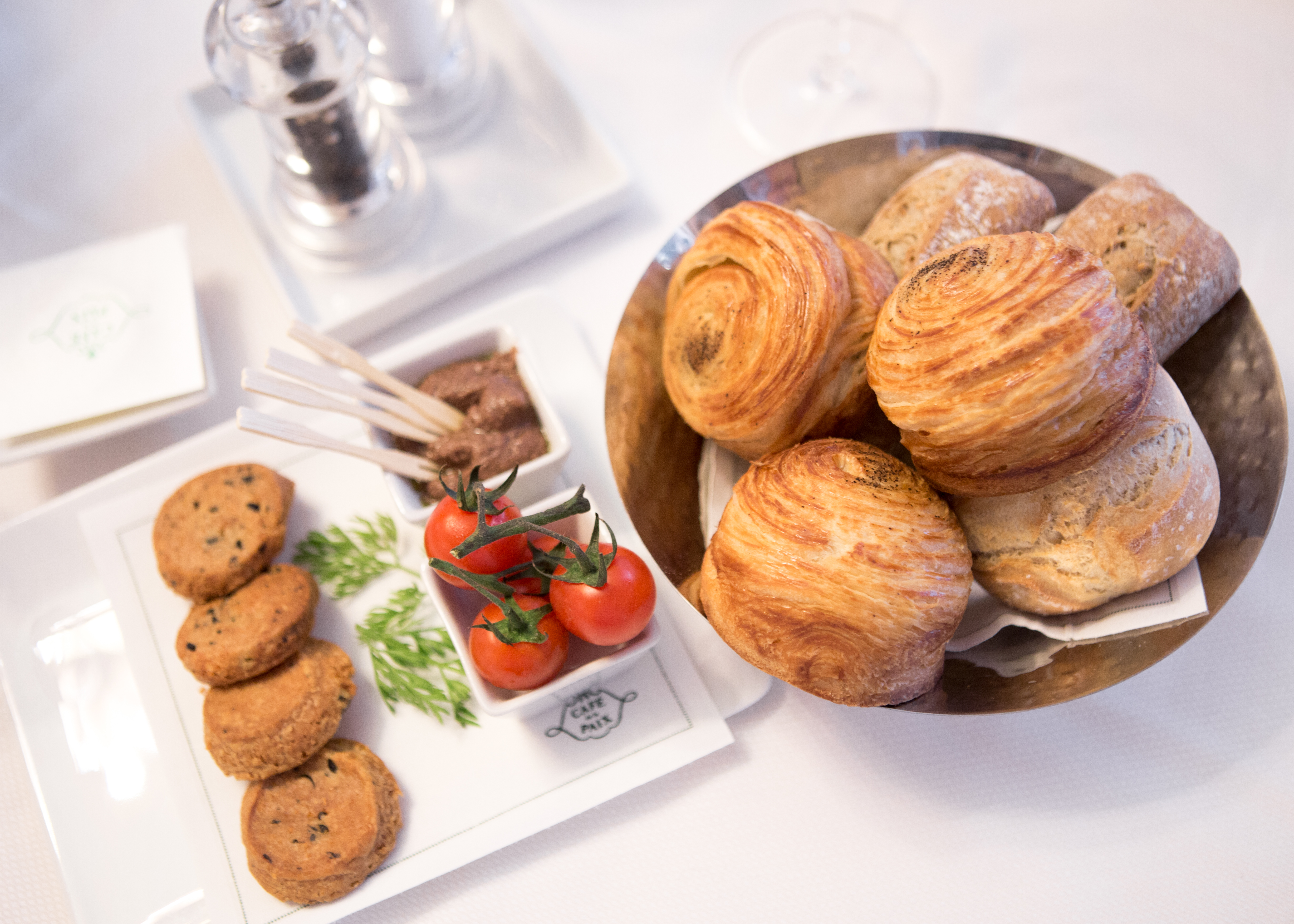 周日的早午餐、每日餐點、經典甜點與咖啡,在米其林星級廚師Laurent André的詮釋下,和平咖啡館提供了巴黎獨特的美食體驗。不僅有時令套餐,也有為專門為巴黎人設計的菜單,食材的原汁原味完美呈現。招牌菜有和平咖啡館特色鵝肝(Foie Gras du Cafe de la Paix),拿破崙千層蛋糕(Mille-Feuille)和海鮮拼盤等等。此外,主菜根據時令更新菜色,如: 一月份主打黑松露,五月份的草莓。進入主餐前,先品嘗可口的開胃菜。不論是法國傳統的小麵包還是自製的酥皮點心,都讓人沉浸在美味的天堂中。