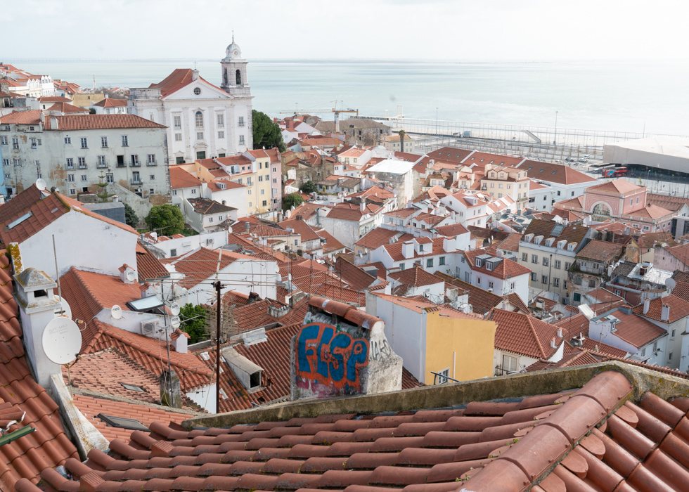 在這個觀景台,您可以看到充滿中世紀風的里斯本復古小鎮—阿爾法瑪(Alfama)。