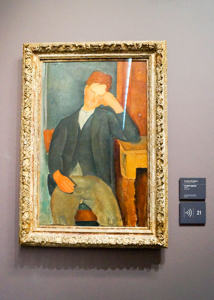 這幅畫是英年早逝的義大利畫家莫迪里安尼(Amedeo Modigliani),過去喜歡畫裸女圖在二十世紀初保守年代飽受爭議,此幅畫為「年輕學徒(Le Jeune Apprenti)」。
