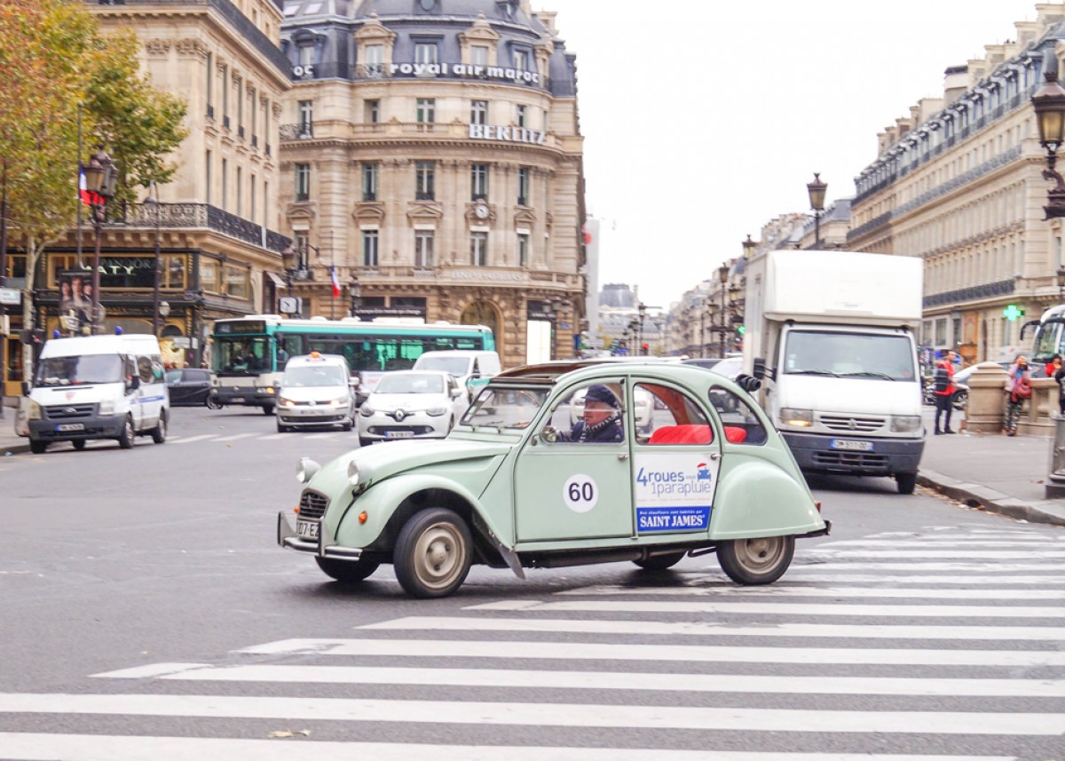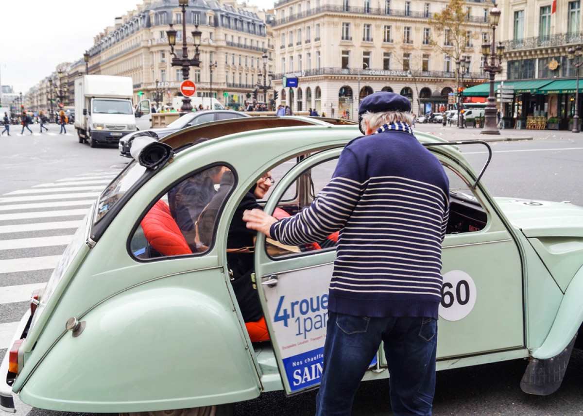 禮拜一巴黎的天氣晴朗不過有點冷,我們超期待搭巴黎古董車雪鐵龍Citroën 2CV,穿梭我們都已經很熟悉的這座城市,一來是4 roues sous 1 parapluie公司提供的古董車Citroën 2CV曾在1948年到1990年風靡全巴黎,算是當時的經典,現在很難有機會乘坐,二來是我們能用不同視野來觀察這美麗的城市,很新鮮。