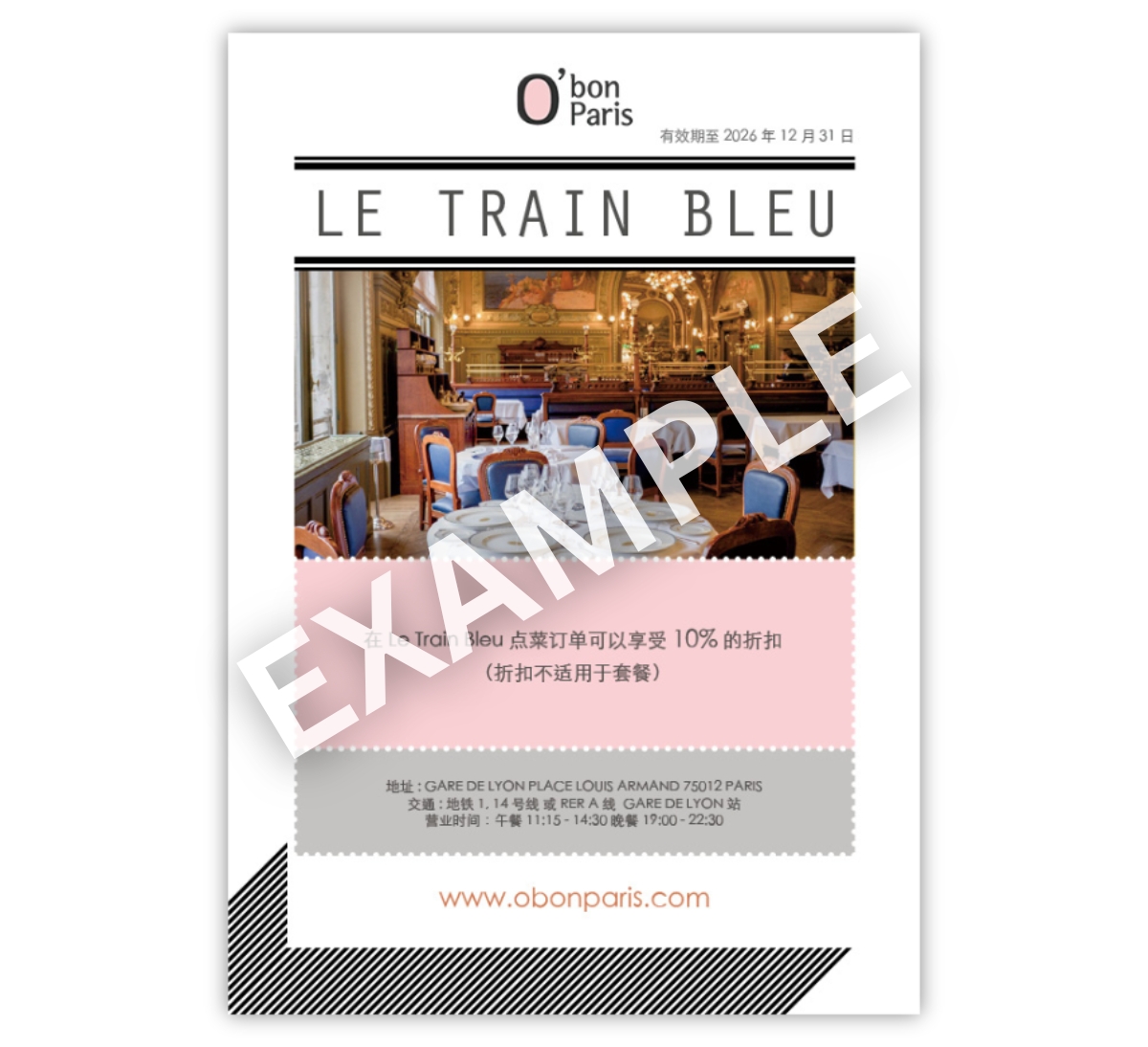 (4)到蓝火车餐厅le Train Bleu中午及晚上时间用餐,享用八折优惠