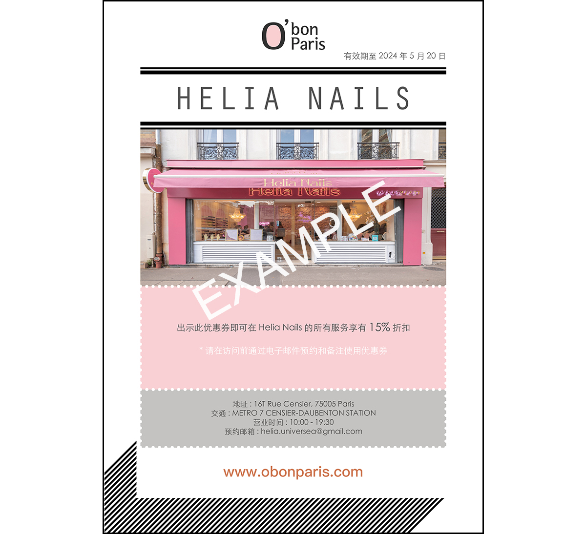 如果您的指甲需要护理,或者您在巴黎寻找实惠的美容服务,如美甲艺术、脱毛或睫毛延长,我们强烈推荐选择Helia Nails沙龙。该美甲沙龙位于第五区,靠近历史悠久的拉丁区的植物园,地理位置优越,适合每个人。