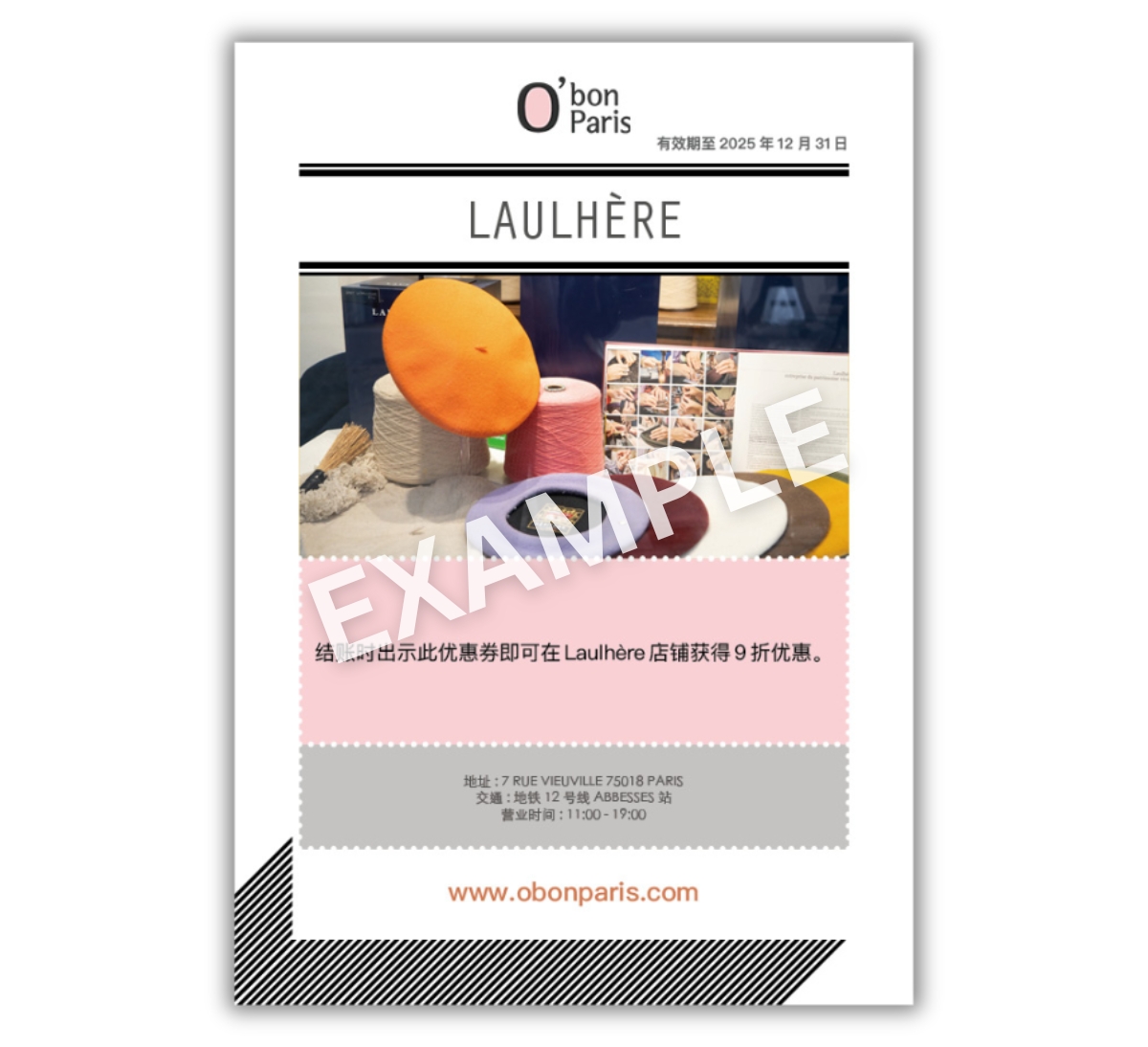 法国人的经典形象是一个男人或一个女人戴着贝雷帽,上面有条纹,手里拿着法棍。HÉRITAGE PAR LAULHÈRE是一家贝雷帽的店铺,成立于1840年,2013年被称为“法国本地生产担保”和“活的文化遗产公司”。欧棒巴黎提供给您10%的折扣。