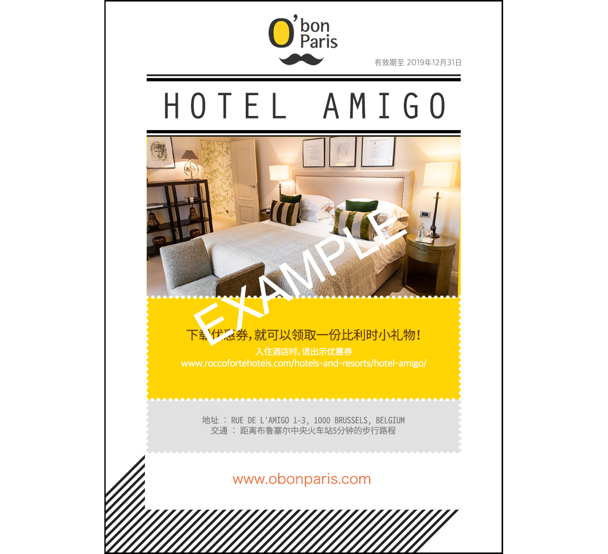 Located in the heart of Brussels, just besides the Grand Place, Hotel Amigo invite you heartly with Brysselian special gift.