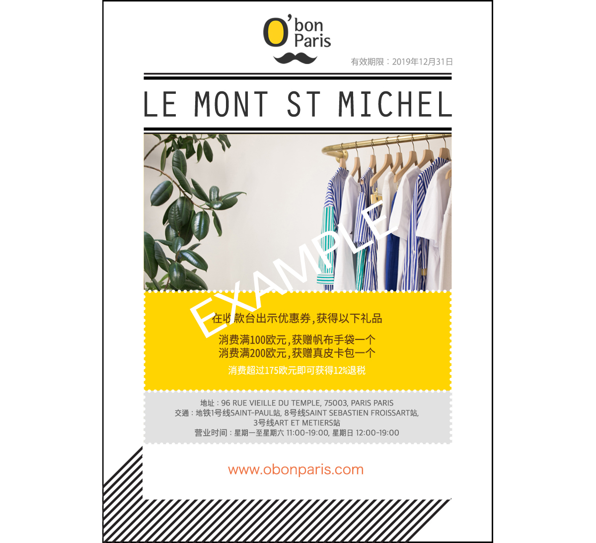(4) 请去LE MONT St MICHEL 商店购买产品并且享受折扣