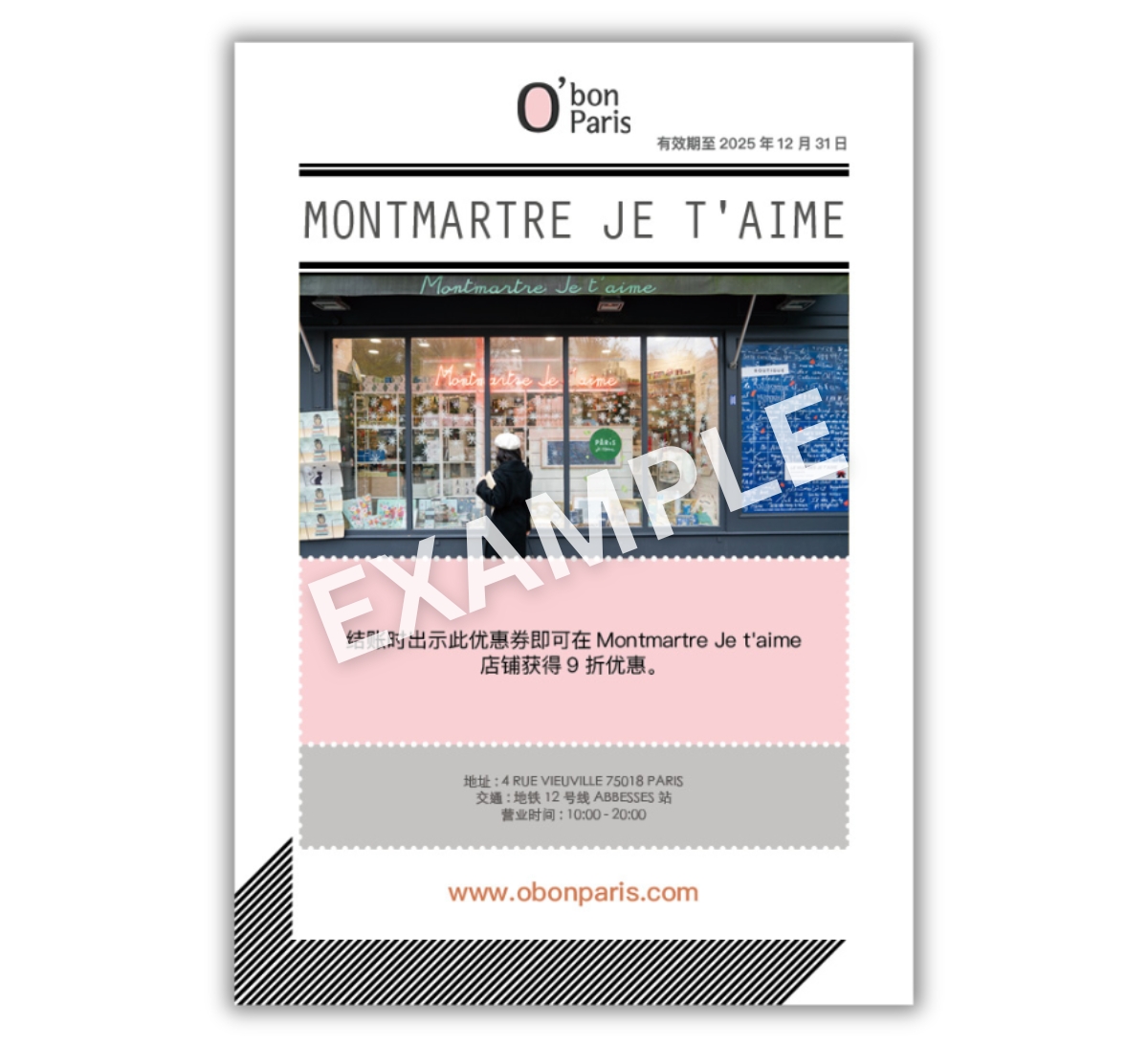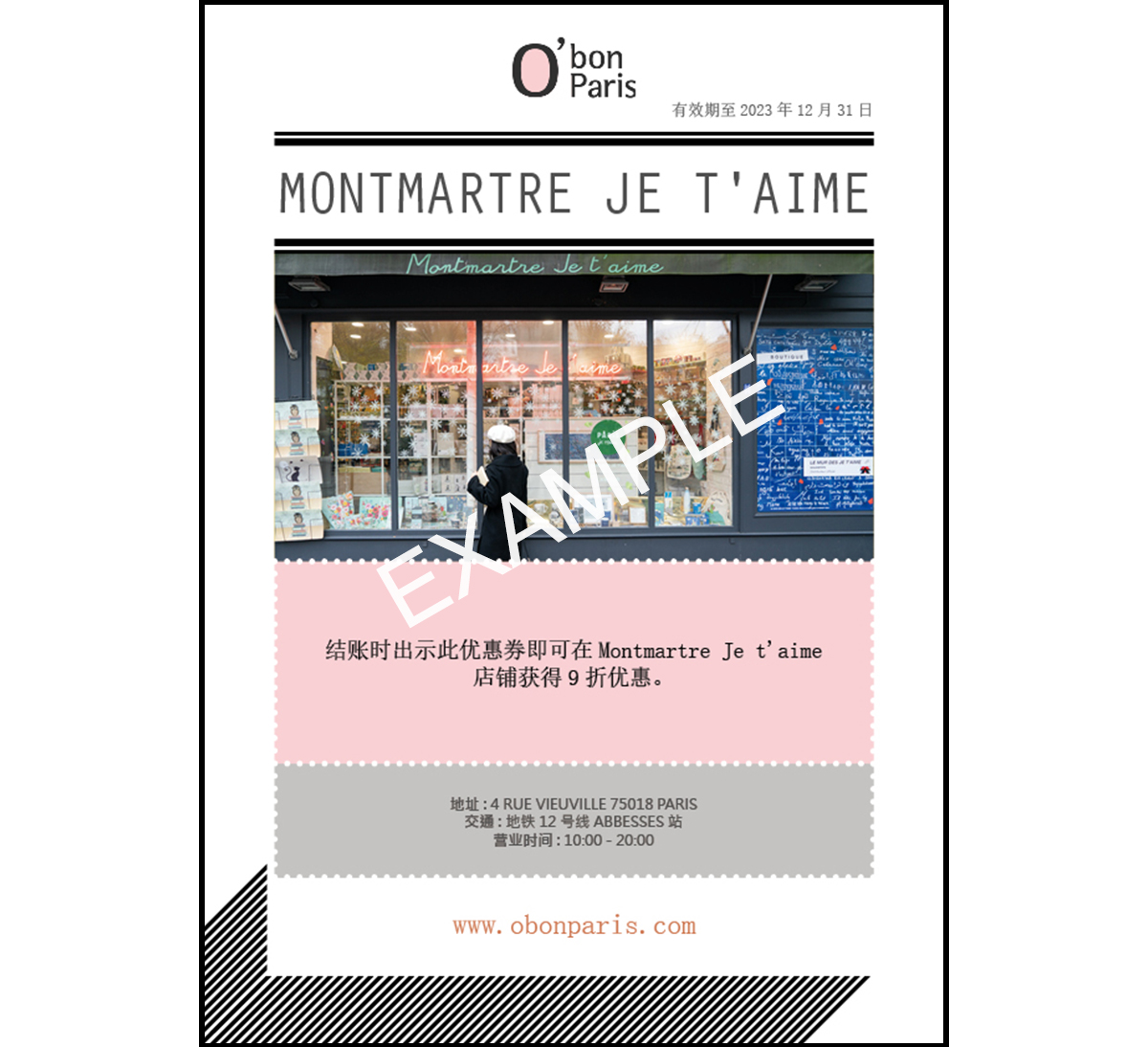 蒙马特有许多著名景点比如说爱墙。Montmartre Je t'aime是爱墙周边的官方商店,距离爱墙这个吸引来自全世界爱人的地方仅一步之遥。你可以找到许多以爱墙为主题的纪念品,这是蒙马特,这个艺术者之家的特别标志性艺术品。拥有欧棒巴黎的优惠券,你可以在购物时享受10%的优惠折扣。
