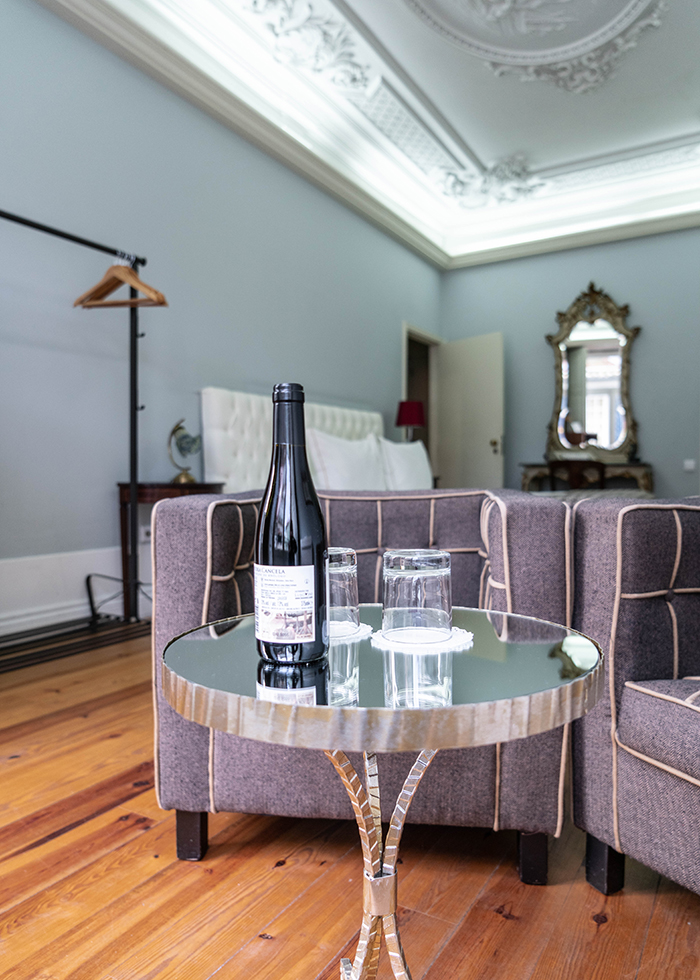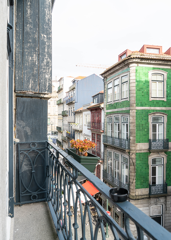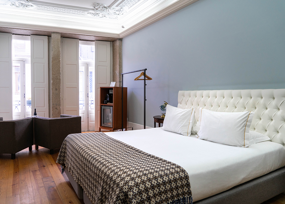 靠近阳台,还有两张舒适的沙发和漂亮的桌子,加上一瓶葡萄酒。让您在波尔图度过充实的一天后,还能够在阳台附近享受私密、轻松又浪漫的时光。