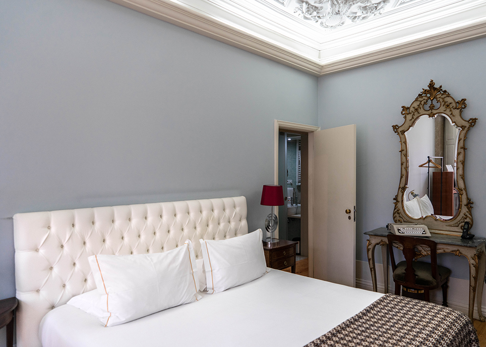 Casa Dos Loios Boutique Guesthouse 精品旅馆,拥有20间客房,包括单人间,双人间,家庭间和豪华间。您在各个房间、走廊和楼梯都能发现它与众不同的魅力。照片上的豪华双人间,宽敞舒适,不仅有一张King Size 的大床,还有衣架及两个单独的沙发,和梳妆台及抽屉。加上天花板上的优雅雕饰,让人感觉住在城堡里般。而另外几间豪华客房,也都有自己独特的风格。