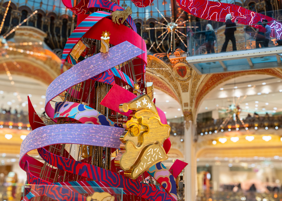 在巴黎最古老的百货商场——老佛爷百货(Galeries Lafayette)里,奢华与优雅全年不散,金色的光芒洒满富丽堂皇的大厅,令人仿佛置身梦境。那座巨大的马赛克穹顶更是始终吸引着所有人的目光。老佛爷百货是巴黎圣诞节的核心地带:每年,高达21米的全城主圣诞树都会在这里竖立,成为节日期间巴黎最具象征性的景观。
