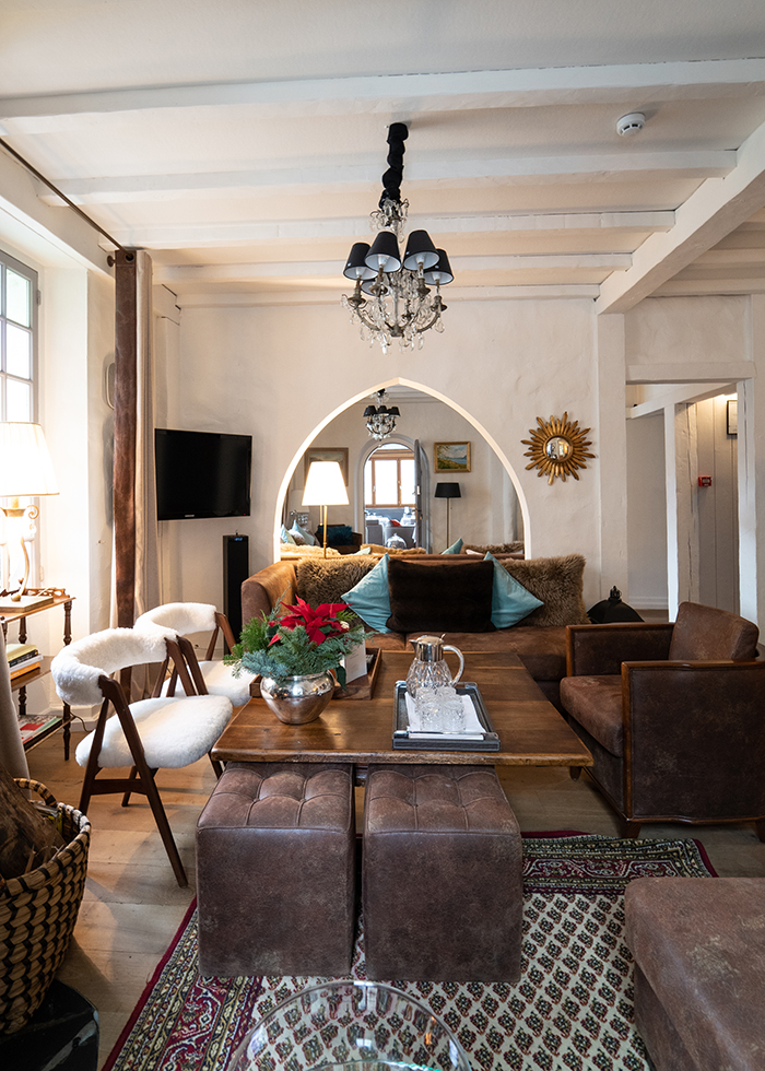 窗明几净,从每一扇窗户望出去的景致都各不相同。有些房间可以看到山脉,马匹在小山丘上懒懒地漫步;有的房间可以看到老城区的古旧建筑物和教堂间。透过大窗户和露台,雪景近在咫尺,正如酒店的名字所示——“在雪山的怀抱”。