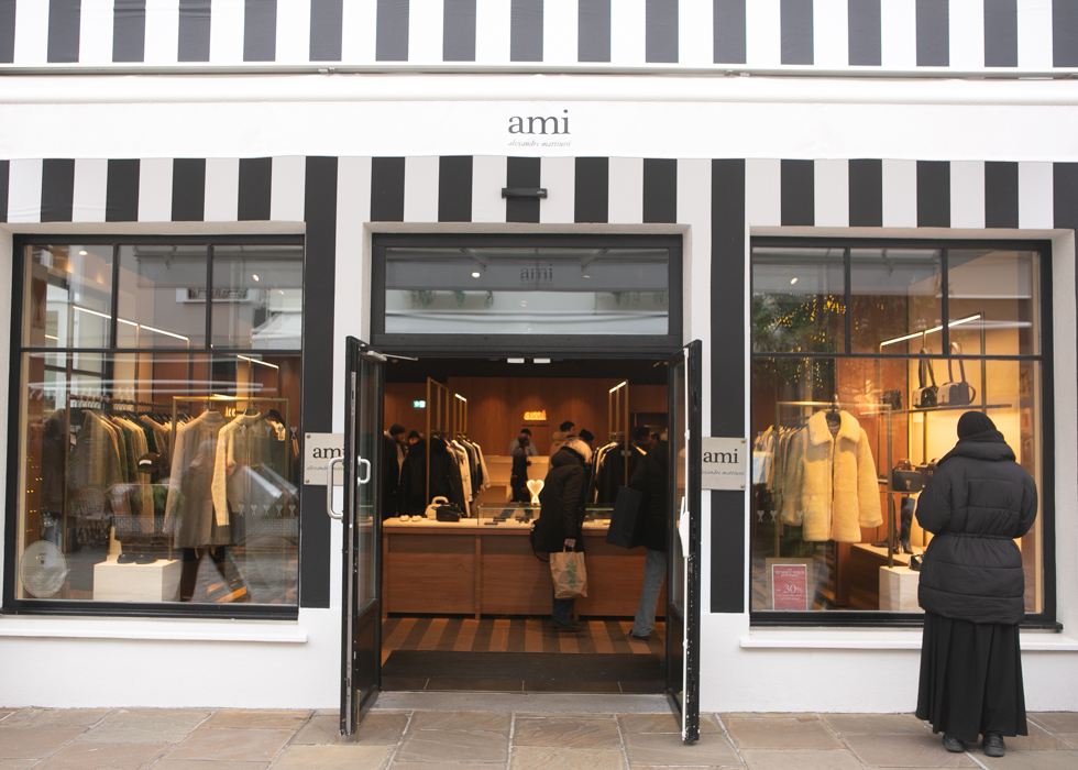 大多数精品店专营奢华成衣、箱包和鞋履,品牌包括 Gucci、Acne Studio、Moncler、AMI、APC、巴宝莉(Burberry)、蔻依(Chloé)、Furla、Givenchy、Longchamp、Maje、Michael Kors、拉夫劳伦、桑德罗、扎迪格和伏尔泰等。