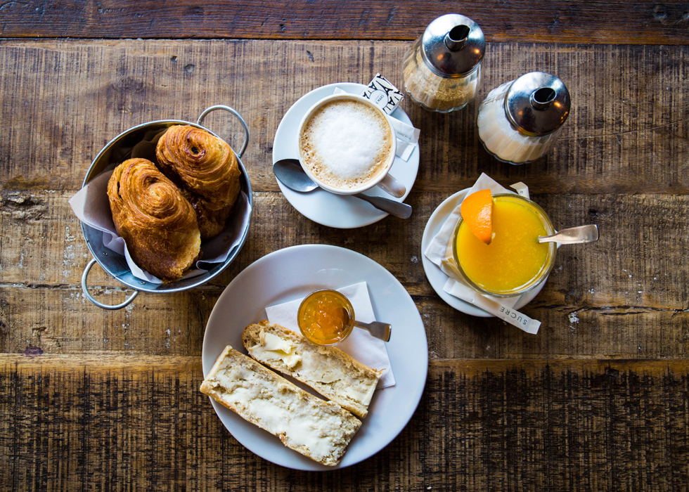 巴黎生活(PARISIEN):热饮+新鲜柳橙汁+法式面包(6€)