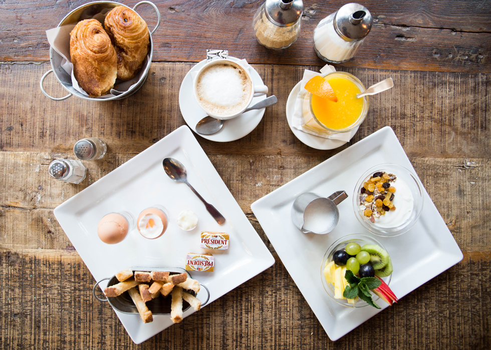 营养满点早餐(LE P'TIT DEJ):巴黎人餐+糖心蛋沾面包条+麦片+水果(12€)